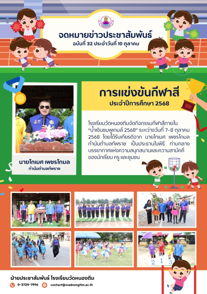 โรงเรียนวัดหนองติมได้จัดกิจกรรมการแข่งขันกีฬาสีภายใน “น้ำเงินชมพูเกมส์” ประจำปีการศึกษา 2568 ระหว่างวันที่ 7–8 ตุลาคม 2568 ณ สนามโรงเรียนวัดหนองติม โดยมีวัตถุประสงค์เพื่อส่งเสริมสุขภาพ พลานามัย ความสามัคคี และความมีน้ำใจนักกีฬาให้แก่นักเรียน
